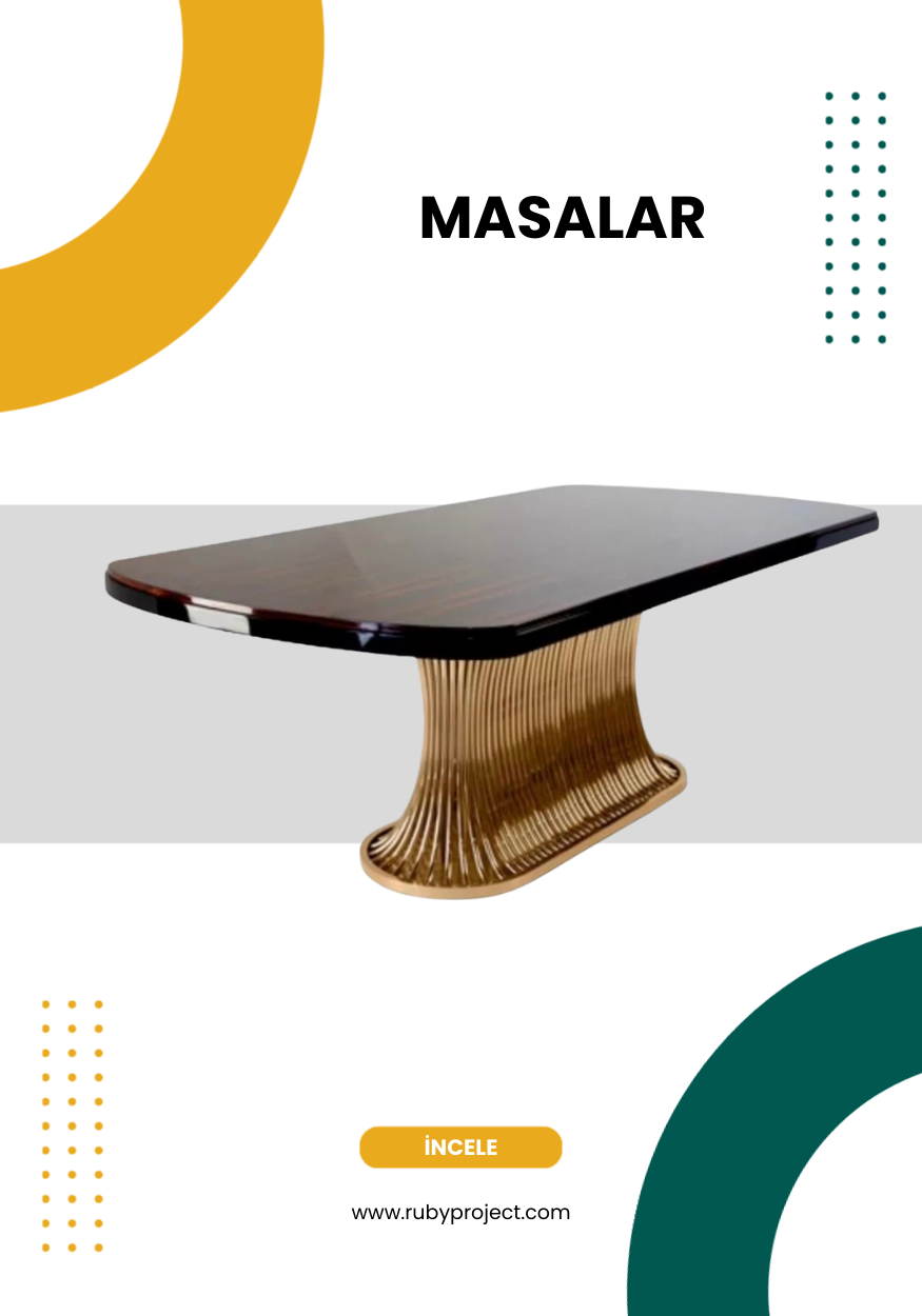 Ruby Project olarak mobilyayı sadece bir kullanım eşyası değil, yaşam alanlarınıza ruh katan bir sanat parçası olarak görüyoruz. Her bir masa, sandalye, bahçe mobilyası veya aksesuar; özgün çizgilerimizle hayat buluyor ve mekanlara karakter katıyor.